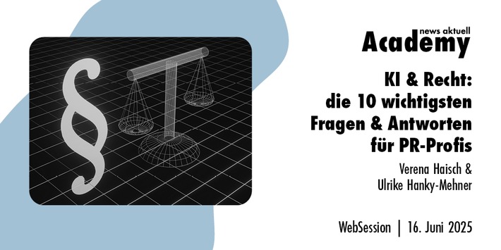 In diesem Webinar diskutieren Rechtsanwältin Verena Haisch und Kommunikationsprofi Ulrike Hanky-Mehner praxisnah die wichtigsten Fragen an der Schnittstelle von KI, Recht und Kommunikation. Sie erhalten konkrete Einblicke und Umsetzungstipps für Ihre Arbeit im Kommunikationsalltag.
