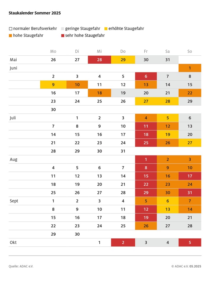Der ADAC erwartet Verkehrshöhepunkte zu folgenden Zeiten: