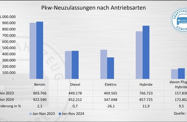 Bonn/Berlin (ots) – Die Zahl der Pkw-Neuzulassungen lag im November 2024 laut dem Kraftfahrt-Bundesamt (KBA) bei rund 244.500 Einheiten und…