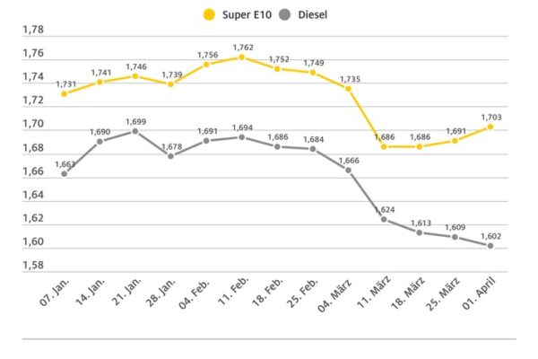 Mai bislang billigster Tankmonat des Jahres / Dieselpreis seit Februar um rund 13 Cent gefallen, Super E10 über 7 Cent günstiger
