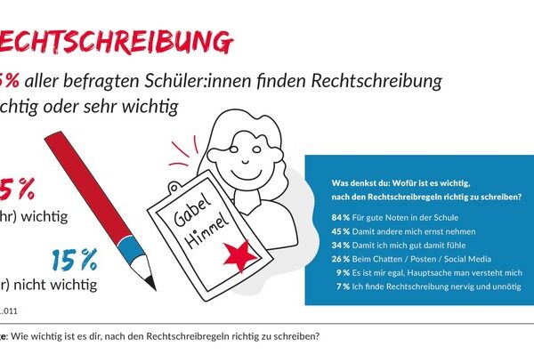 Bochum (ots) – – 85 % aller befragten Schüler:innen finden Rechtschreibung wichtig oder sehr wichtig – Rund 80 % erwarten,…